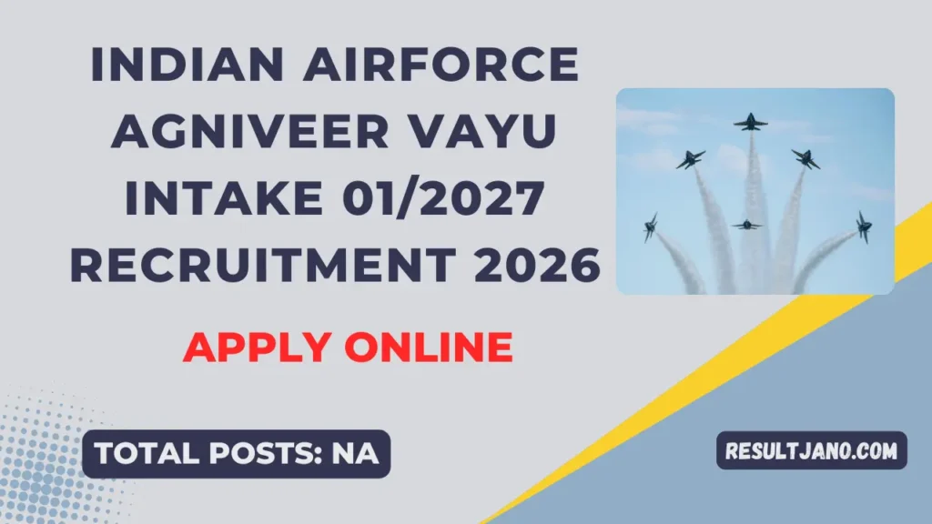 Indian Airforce Agniveer Vayu Intake 01/2027 Recruitment 2026 notification released. Apply online, visit resultjano.com